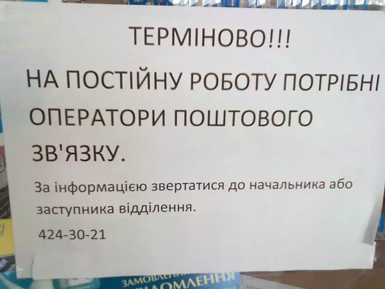 Почтовому отделению 03142 что на Академгородке, нужны операторы почтовой связи. Вот сфоткал обьявку - может ком